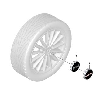 Diese dreht sich nicht mit den Felgen mit sondern balanciert sich wie beim Rolls-Royce waagrecht aus, so daß der Schriftzug MINI bzw. Works immer lesbar bleibt und nie auf dem Kopf steht.