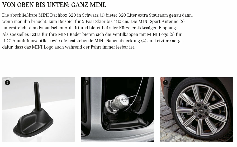 Bilder der Abdeckungen sind von der MINI-Homepage, die sind ja nicht in der Preisliste abgebildet...