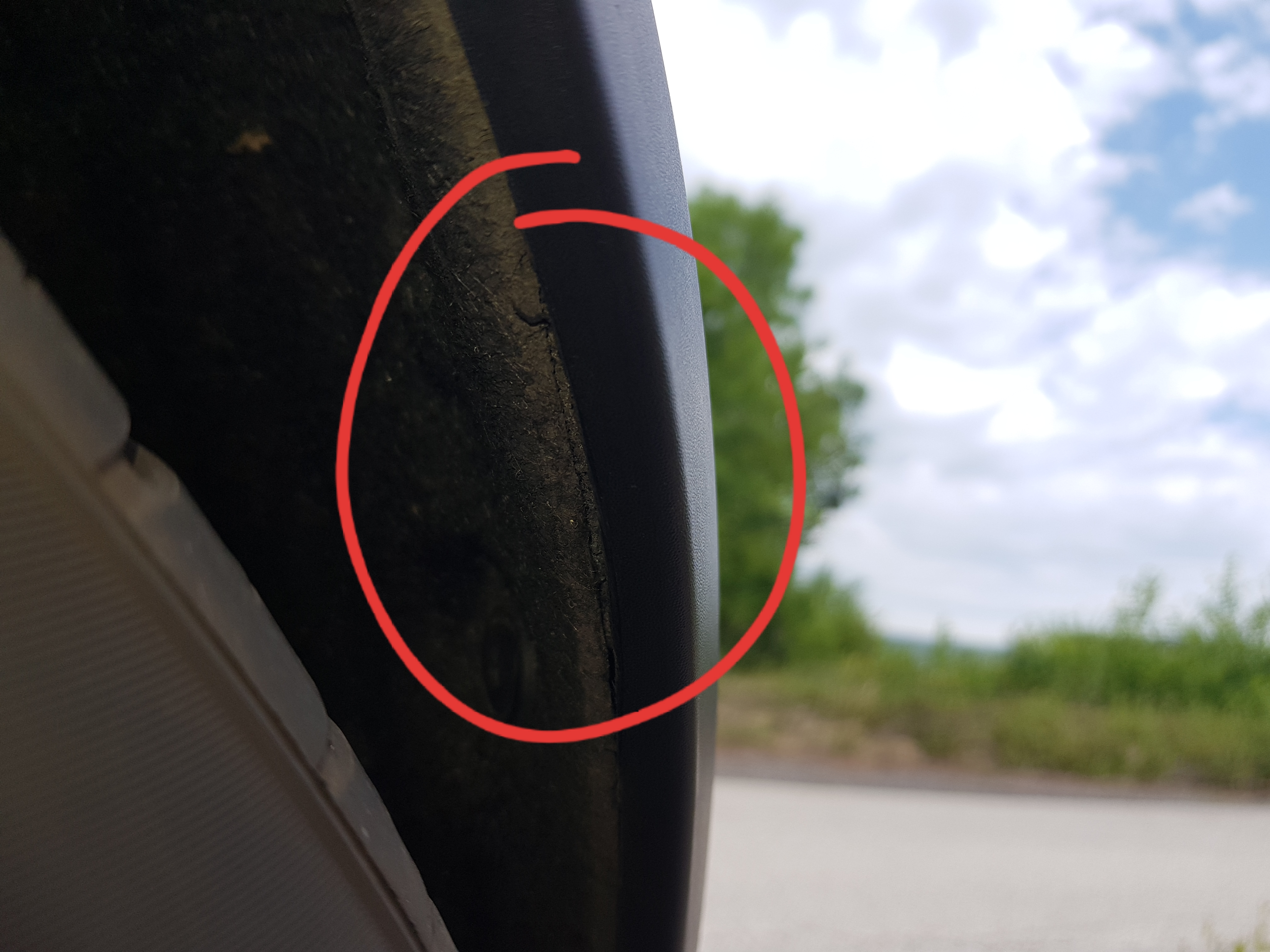 Hier sieht man am Radlauf die leichte Unförmigkeit wenn man genau schaut.