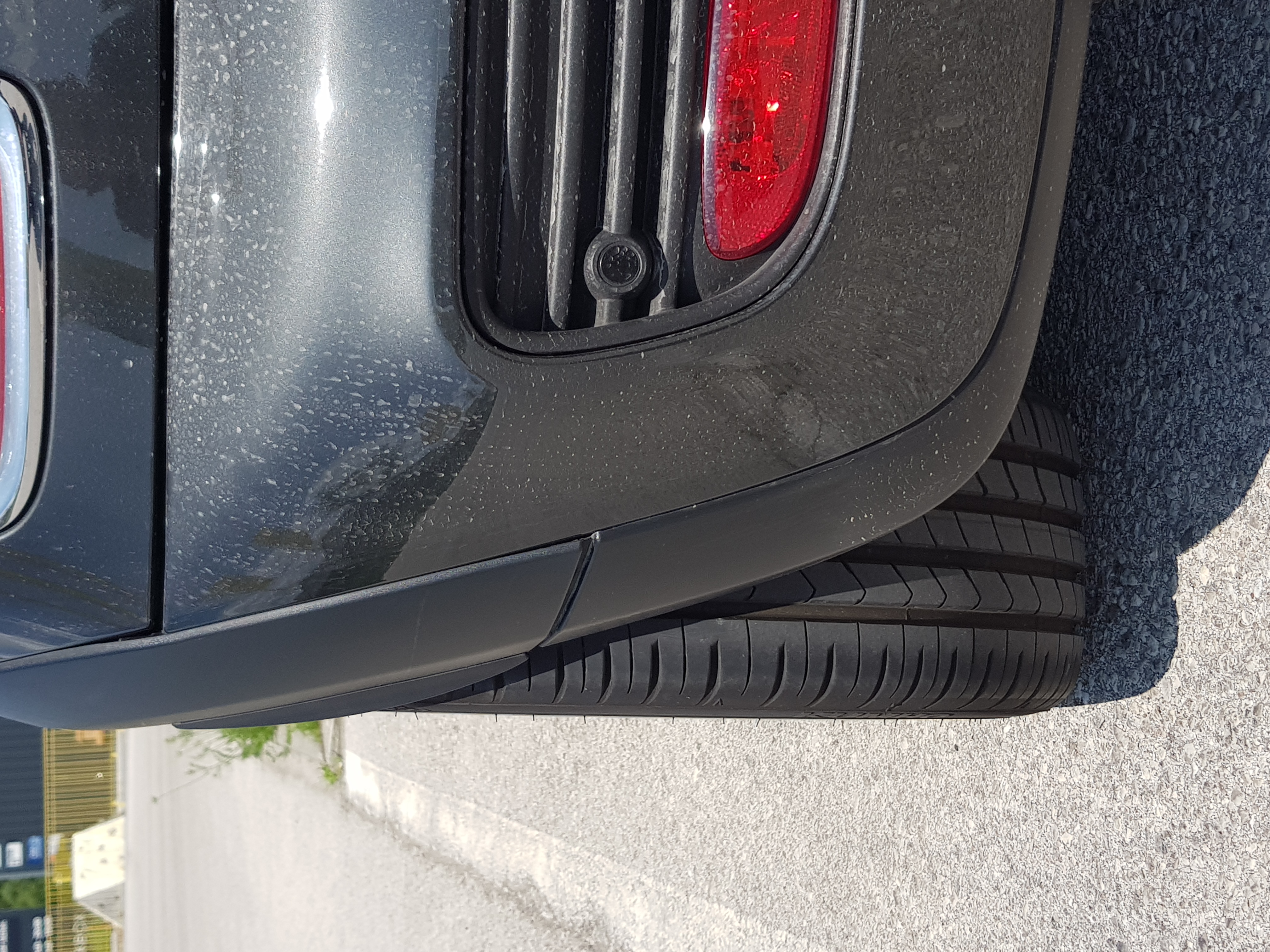 Da das ja mit der Radabdeckung beim TÜV nicht geklappt hat, habe ich mich etwas früher auf den Weg gemacht und auf einem der Prüfstelle nahe gelegenen Parkplatz die kleinen Radabdeckungen von Eibach montiert.