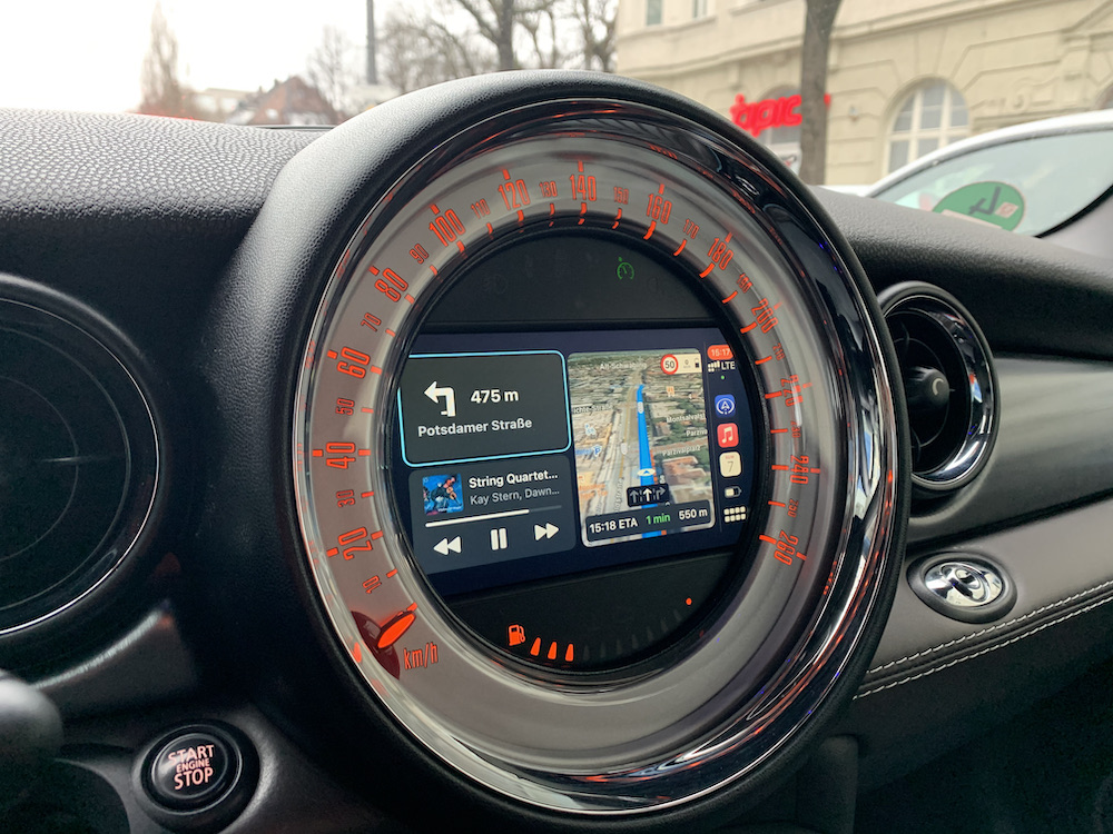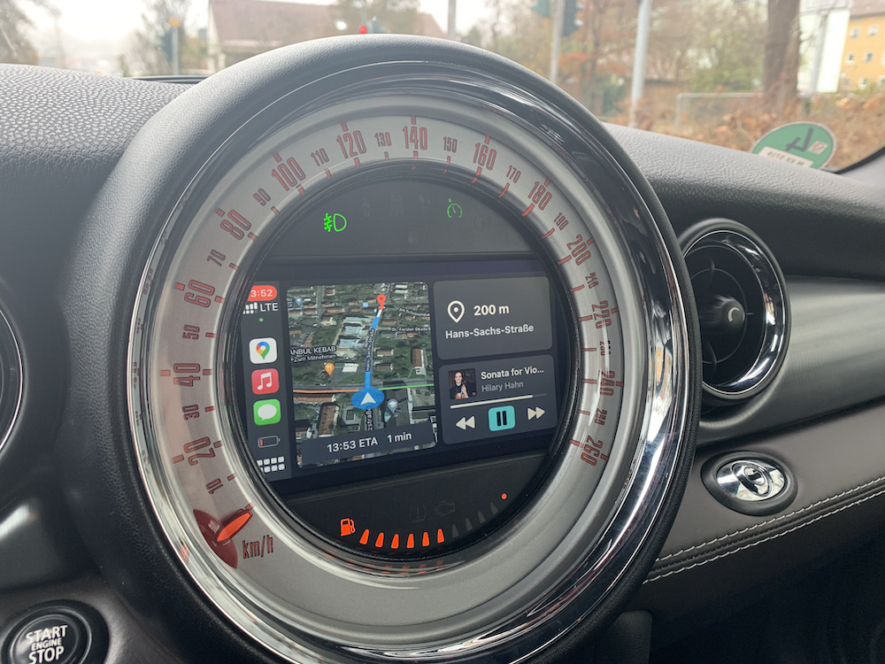 4. Der Start des Moduls und die Verbindung erfolgen sehr schnell, das Modul merkt auch meist, was vorher eingestellt war (ob Carplay oder die MINI Oberfläche)