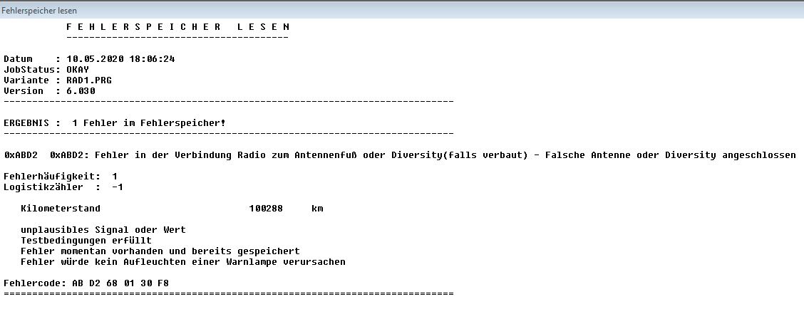 Ich hatte im Fehlerspeicher schon länger ein Fehler im Bereich der Radioantenne stehen.