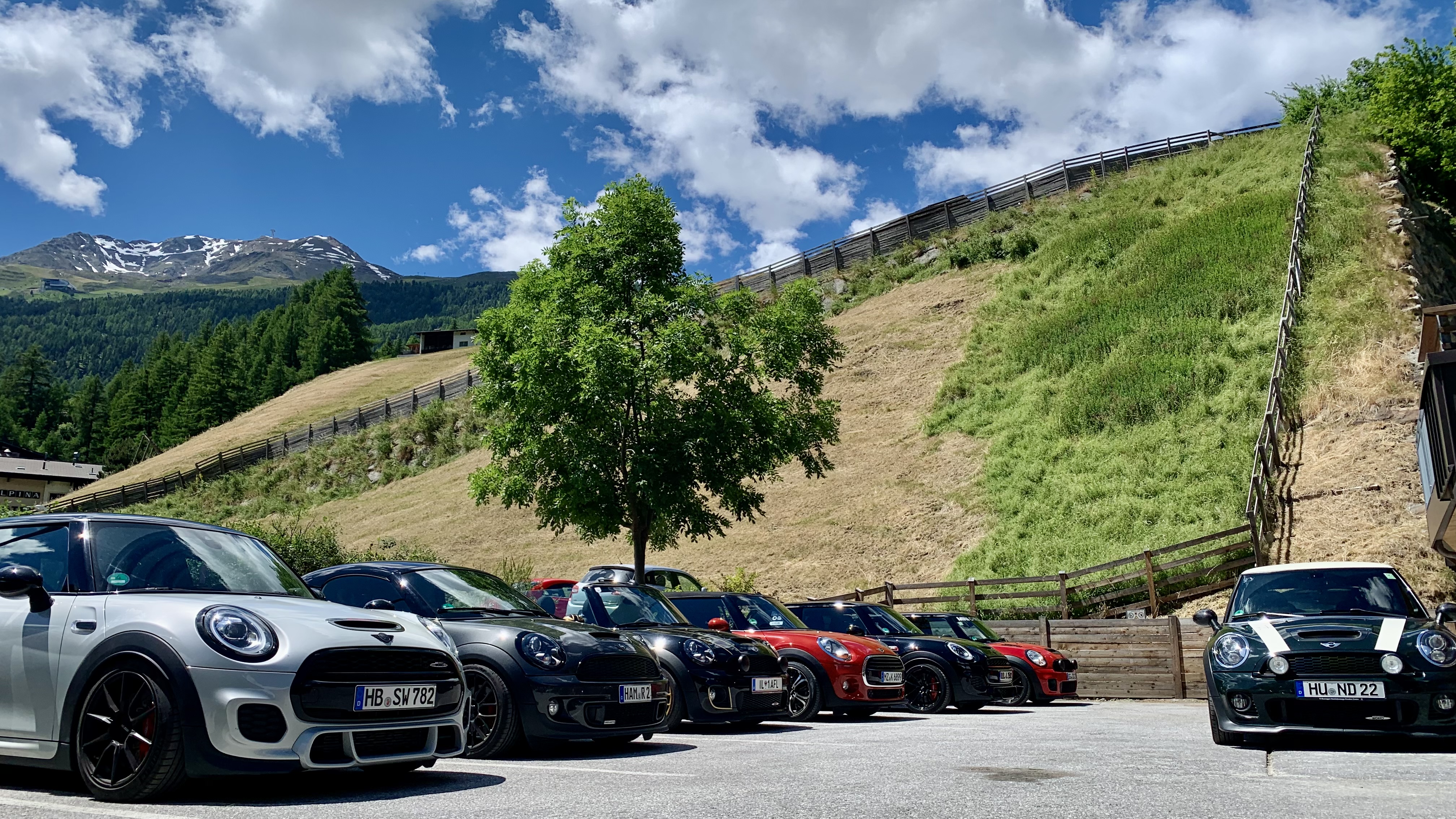 Die Reise führte uns weiter bis nach Österreich, wo ein Parkplatz mitten in Sölden,  von der MINI-Fraktion in in Beschlag genommen wurde.