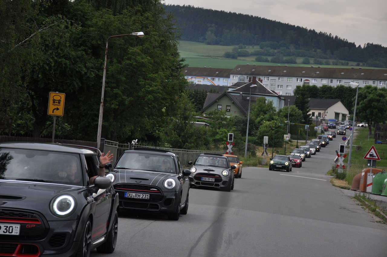 Zwei Vorbeifahrten der Kolonne gibt's auch als Videos, einstweilen nur mal auf der Facebookseite von MINI².info https://www.facebook.com/MINI2.info