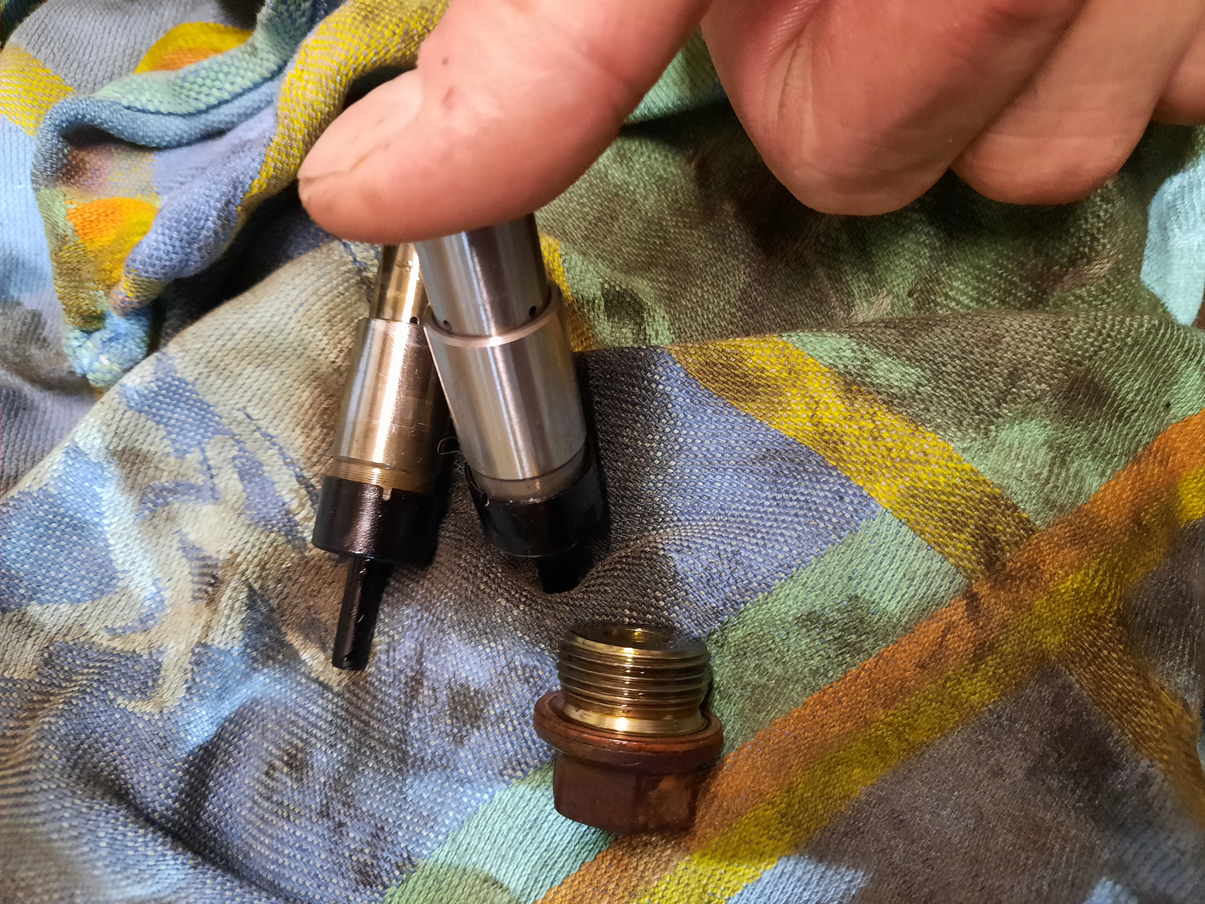 So. Der neue Kettenspanner wird entriegelt, indem man den inneren Kolben einmal kurz reindrückt. Dann kommt der Kolben raus und der Spanner hat die Vorspannung wie der, den ich ausgebaut habe. Andernfalls fehlt die Vorspannung und die Kette wabbelt hin und her. Nicht gut. Das fehlt leider in der Anleitung.