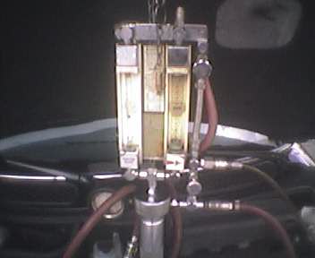 Gesagt getan. Die Spritleitung wurde unterbrochen und ein Gerät dazwischengeschaltet. Es enthielt eine blaue Reinigungs-Flüssigkeit