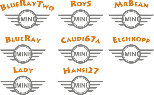 ich bin dabei gerade eine Vorlage für jeden Namen zu machen unter Berücksichtigung der Groß- und Kleinschreibung ........... ich muß sagen das sieht echt nicht gut aus!!! Da diese Schrift keine Kleinbuchstaben (Gemeine) hat sieht das echt komisch aus ... ich denke Entwurf 2 oder 6 wären da wesentlich besser!!! ich werde das mal eben kurz nochmal als JPG abspeichern das ihr es auch nochmal sehen könnt!!!