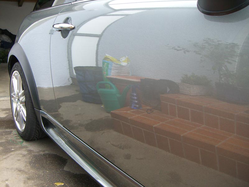 Die Arbeit war sehr deprimierend, weil keine deutliche Besserung zu sehen war (in meinen Augen, sollte man sofort beim Putzen einen merkbaren Erfolg erzielen können, weil dadurch die Lust daran nicht vergeht). Doch als ich abends meinen Kleinen in die Garage stellte, hab ich bei dunklerem Licht doch einen ziemlichen Unterschied gesehen .Darüber hinaus muss man klar sagen, dass die fießen weißen Flecken ohne Porbleme raus gingen.