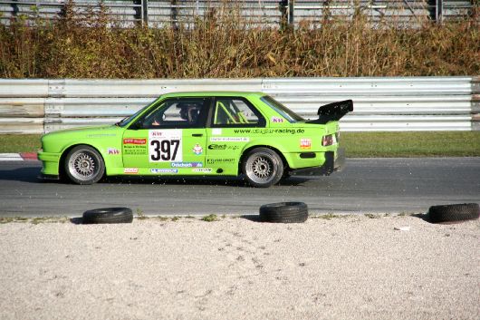Mit etwas flauem Magen starteten wir zu unserem zweiten Stint, nur um noch haarsträubenderere Situationen zu erleben. Oder wie würdet Ihr es bezeichnen, wenn Ihr unter Aufbringung Eures ganzen Fahrkönnens mit 160 + X km/h die Fahrerlagerkurve durcheilt, den Anbremspunkt der anschließenden 180° Kurve noch gerade so erwischt und dann einlenken wollt, doch, oh Schreck, dort quetscht sich gerade ein orangefarbenes Monster in Form eines 600PS starken Porsche 993 GT2 mit Slicks an Euch vorbei... ohne Rücksicht auf Verluste, in einem freien Training.