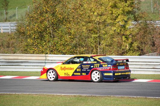 Erschöpft und hungrig machten sich die vier Herren und eine Dame auf, die Mittagspause zu nutzen, ihre MINIs zu betanken und die Mägen zu befüllen. Wir hatten Glück und genossen niedrige Benzinpreise und leckere Pizza an diesem herrlichen Herbsttag. Frisch gestärkt ging es um 14:30 Uhr weiter und da war sie wieder unsere Sorge: Mit den Irren in einer Startaufstellung? Dazu einen fliegenden Start? Das kann nur Schrott geben in der ersten Schikane, in die nach dem Start alle, wie die Hyänen aus über 180km/h reinbremsen. Dafür sind uns unsere Alltagsfahrzeuge doch zu schade.