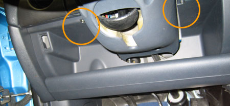 Die Verkleidung unterhalb des Lenkrads ist mit zwei Schnappern (7) verriegelt.