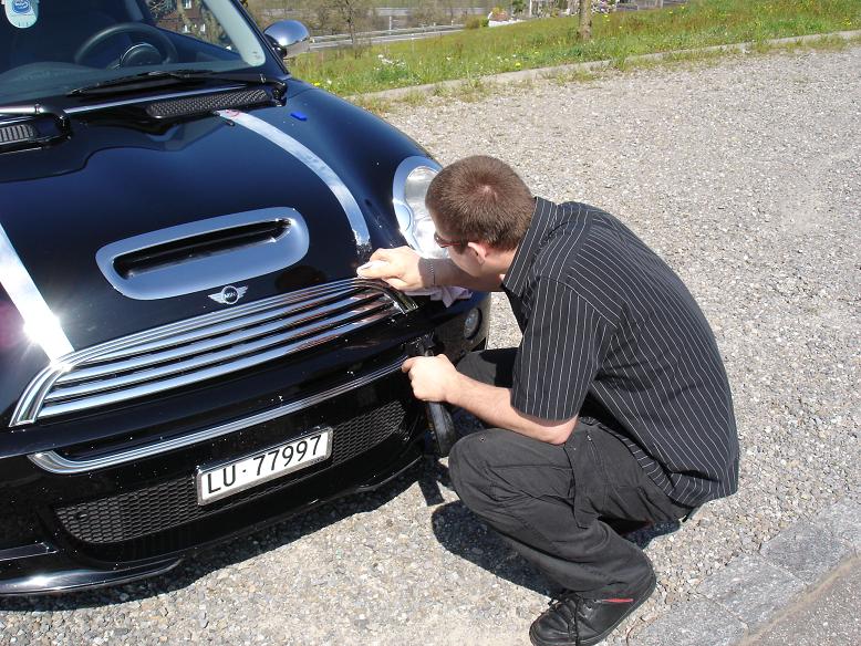 ich könnte mir das als kontrast schon gut mit chromhutze und chromspiegel vorstellen. jedoch würde ich bei einer chromhutze die lamellen des kühlergrills in wagenfarbe wählen, weil das sonst in meinen augen zuviel wäre.