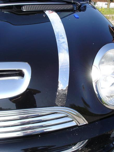 Ich habe heute meine Chromfolie runtergemacht. Ich werde mir identische Stripes machen lassen wie zuvor drauf waren, allerdings nicht mehr in Chrom. Die Hutze ist in Chrom, auf dem Foto hatte ich sie noch nicht.