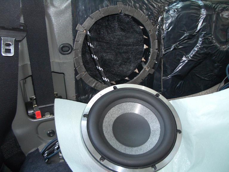 Der Einbau des Subwoofers in den Kofferraum steht nicht zur Diskussion. Da ich auf meinen Fahrten meist mit einem Notebook und einer großen Tasche unterwegs bin brauche ich den (spärlichen) Platz im Kofferraum. Also ab mit den Subwoofern in die Originaleinbauplätze der hinteren Laufsprecher.