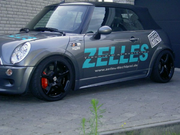 passen tut es schon aber das erscheinungsbild deines mini wird sich sehr verändern. es sieht dann so aus als würde die seite weiter runterkommen als die front und das heck, weis nicht ob du das willst.