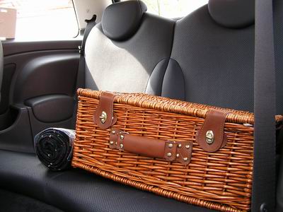 Rumrutschen kann der Korb zum Glück auch bei rasanter Fahrweise nicht, weil er genau zwischen der Seitenwand und dem Gurtschloß eingeklemmt ist, da tut er keinen Mucks