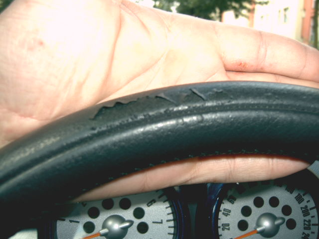 Bei mir löst sich nach und nach das Leder vom Lenkrad ab!