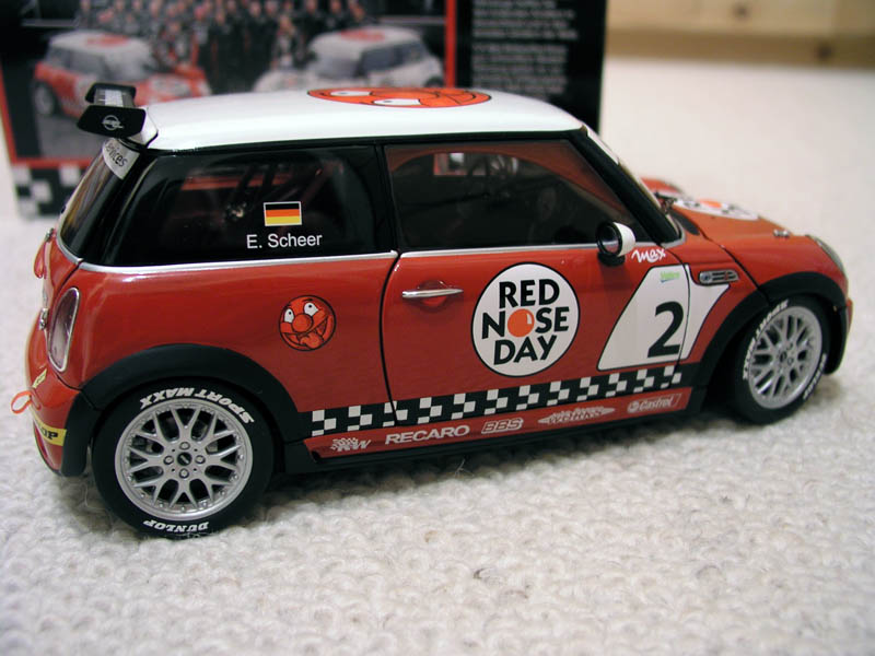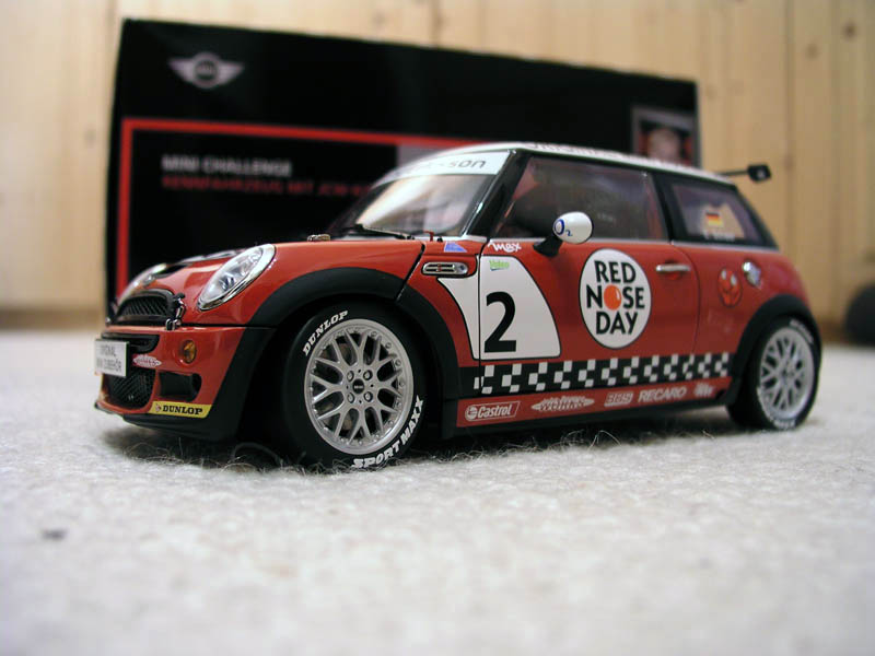 ich habe Gestern das Mini Red Nose Day Challenge Model in 1/18 Rot mit weißem Dach bekommen. Wirklich sehr schön und sehr detailliert mit vielen JCW Gimmicks. Die Türen/Heckklappe/Motorhaube lassen sich öffnen. Innen mit Überrollkäfig/Feuerlöscher/Splitternetz. Wenn ich es zeitlich schaffe, stelle ich am WE mal ein Foto ein.