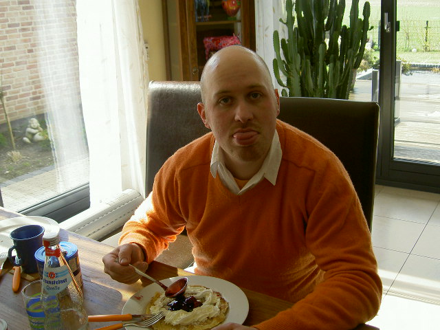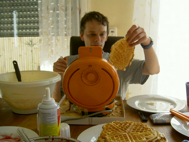 man beachte das orange farbene Waffeleisen Mr. Orange