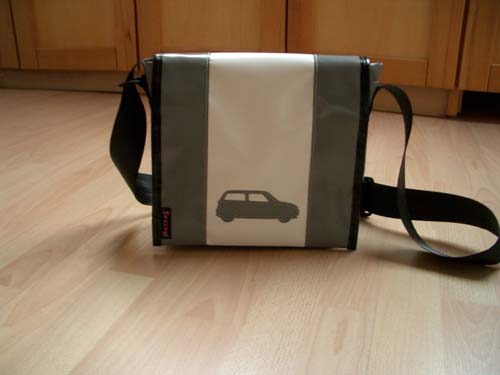 - die Tasche kostet normalerweise 98,- € (incl. Versand); die abgebildete format:MINI-Version (wg. Logo) lag bei 79,- €...