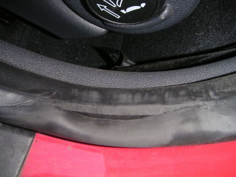 Den Spuren nach sieht es so aus, als wenn die Tür ständig über die Dichtung geschabt wäre. Schöner Mist!