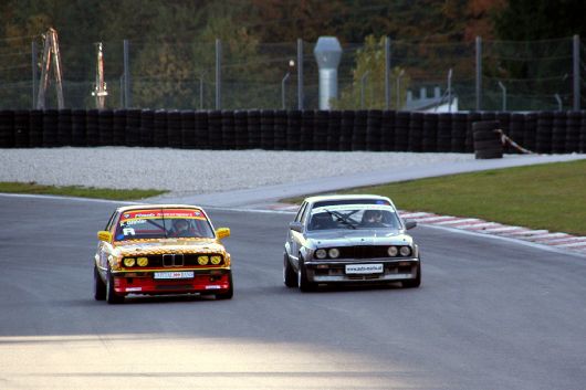 Doch so einfach, wie gedacht, gestaltete sich die Sache nicht, denn zu erst einmal lehrte man uns das Fürchten. Der Reihe nach: Bis 07:00h Box suchen und beziehen, Fahrzeuge von allem unnötigen Ballast und nicht festen Gegenständen befreien. Radmuttern prüfen, Reifendruck korrigieren. 07:30h: Fahrerbesprechung mit Einweisung in den Tagesablauf -> 2x freies Training, Qualifying, 2 Rennen à 12 Runden, Siegerehrung. Dazu noch Flaggenkunde und allgemeines Verhalten bei einem Unfall und Ankündigung von Strafen bei Mißachtung des Gesagten. 08:30h: Letzte Tips von der grauen Eminenz („Geht mit dem Reifendruck nicht zu weit runter. Der Reifen erwärmt sich erstens bei diesen Temperaturen nicht so stark und zweitens darf der Reifen in der ultraschnellen Fahrerlagerkurve nicht übermäßig walken, daß kann tödlich sein – für den Reifen und auch für Euch.“Wink. Die Folge dieser eindringlichen Worte: Wir hatten Respekt. Viel Respekt. So viel Respekt, daß unser Mentor anscheinend ein gewisses Unwohlsein in unseren Gesichtern entdeckte und spontan vorschlug einige Runden in einem MINI Pace Car mit gedrosseltem Tempo vorauszufahren, um den Lernprozeß „wie sieht die Ideallinie auf dem Salzburgring aus“ zu verkürzen. Wir nahmen diesen Vorschlag mehr als dankbar an: