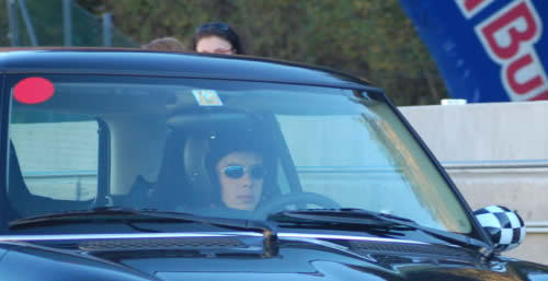 Erschöpft und hungrig machten sich die vier Herren und eine Dame auf, die Mittagspause zu nutzen, ihre MINIs zu betanken und die Mägen zu befüllen. Wir hatten Glück und genossen niedrige Benzinpreise und leckere Pizza an diesem herrlichen Herbsttag. Frisch gestärkt ging es um 14:30 Uhr weiter und da war sie wieder unsere Sorge: Mit den Irren in einer Startaufstellung? Dazu einen fliegenden Start? Das kann nur Schrott geben in der ersten Schikane, in die nach dem Start alle, wie die Hyänen aus über 180km/h reinbremsen. Dafür sind uns unsere Alltagsfahrzeuge doch zu schade.