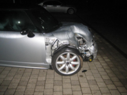 Naja ich bin auf ne strecke unterwegs gewesen die ich nich kannte war ein bisschen schnell (oh wunder is ja auch ein Works) dann hab ich ein schild gesehen rechts links kurve hab scho gebremst bin in die kurve war weiter auf der bremse weil ich doch arg schnell war. Dan so ein schild es wird nochmal eng tja scheiß eisplatte bin dann grade aus nen hang runter mit ungefähr 60 bin geflogen aufgekommen vorne links zu erst und bin den hang runter und unten gegen nen baum mit ungefähr 40. Es is aber kein airbag los gegangen. Mir is auch nichts passiert aber ich war im ersten moment stink sauer und dann war ich kurz vorm heulen. Als ich gestern die fotos gemacht hab hab ich sogar geheult, naja der kleine liegt mir doch sehr am herzen.