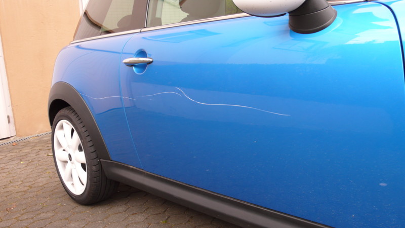 bei genauerem betrachten sah man, dass es bis auf das metall ging. komisch ist aller dings, das nur mein auto zerkratzt wurde, kein anderes in der straße. da ich heute eh einen termin beim freundlichen hatte, es wurde eine sonnenblende getauscht, hat sich der mann vom service gleich mal das übel angesehen. sein kommentar dazu war, da hat sie aber jemand richtig leib gehabt. das zweite was er sagte war das die repapatur mind. 1500€ kosten würde. ich also zur polizei und anzeige gegen unbekannt gemacht.....nun ist mein mini erst 2 monate alt und bekommt schon seine 3. lackierung auf der beifahrerseite, 1. vom werk, 2. lackfehler, korrektur beim freundlichen, und nun die 3....