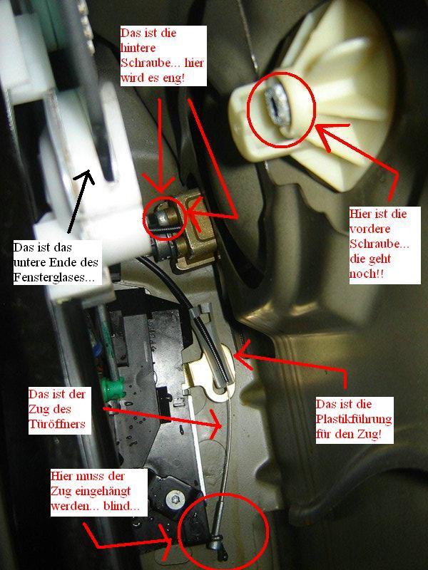 Wenn du die Türverkleidung unten hast, wirst du nur einer ergonomisch sehr ungünstigen Position an die Schrauben rankommen, außerdem ist es in der Türverkleidung sehr eng und hier und dort sind scharfe Blechkkanten...