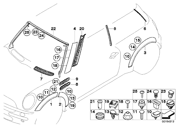 der Gummistöpsel den du suchst, ist auf der Abbildung mit der Nummmer 21. Dieser Stöpsel leiert mit der Zeit aus (wenn man die Seitenkieme ausbaut). Der Stöpsel sollte dann erneuert werden Top 21 Bezeichnung GROMMET Anzahl 1 Teilenummer 51400766479