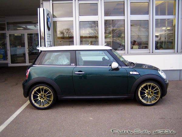 Ich habe einen Cooper S in BRG mit weißem Dach, jetzt soll er eine anständige Felge bekommen....
