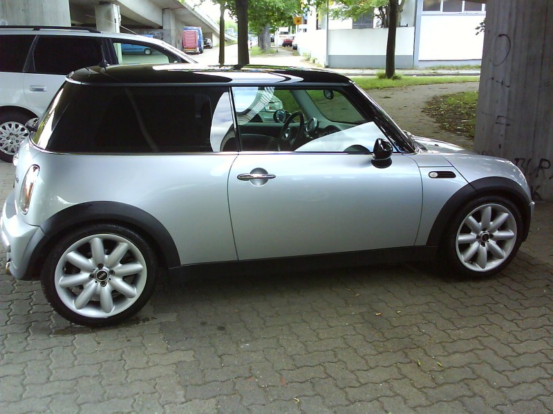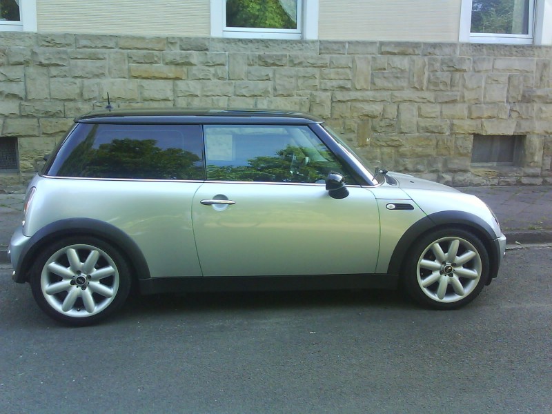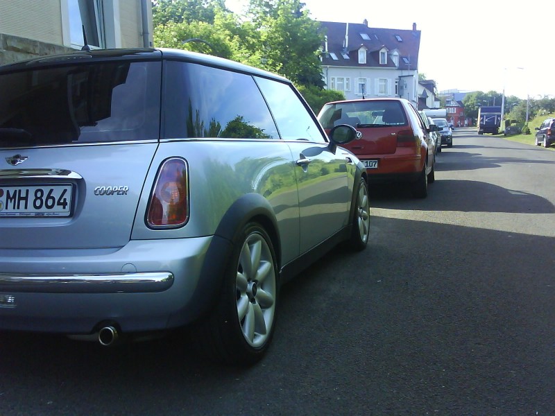 Letzte Umbauten-> Kicker Subwoofer im doppelten Boden, Alpine PDX 1.600 Endstufe, Cooper S Front mit Hamann Lippe, Angel Ayes Tagfahrleuchten, Öl-Zusatzinstrumente, Felgen weiß lackiert / Bett poliert, KW V3 Gewindefahrwerk, JCW Luftfilter, 6 Gang GP Getriebe mit Sperre, Schaltwegsverkürzung, Recaro Pole Position, Türen umgebaut, 2 Sitzerumbau, Käfig, Zusatzscheinwerfer, modifizierte Frontschürze