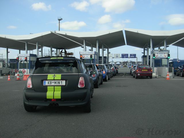 Sprotte, von der wir den Lokaltipp bekommen hatten, kam die Straße lang gefahren und stellte sich zu unseren MINIs dazu. Da Coop bei seiner frühmorgentlichen Anreise dreckig wurde (LKWs und Regenfahrbahn