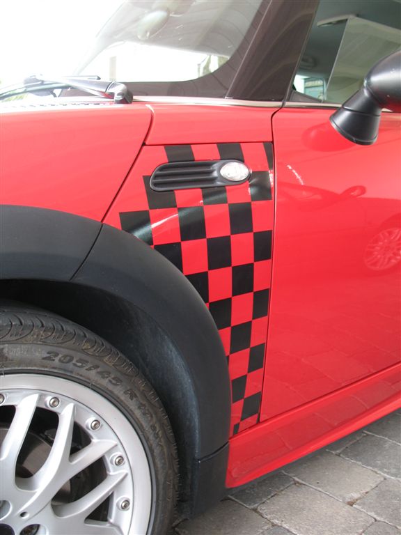 habe mir aus der Bucht ein Paar Checkmate-Aufkleber schicken lassen. Der Verkäufer sitzt zwar in UK aber der Preis ist heiss: 7,50 Pfund (8,70 Euro) + 4,99 Pfund Versand. Qualität und Passgenauigkeit sind echt top, Farbe der Quadrate kann frei gewählt werden und obendrauf gibts noch einen Bonus-Schriftzug, den ich aber nicht geklebt habe.
