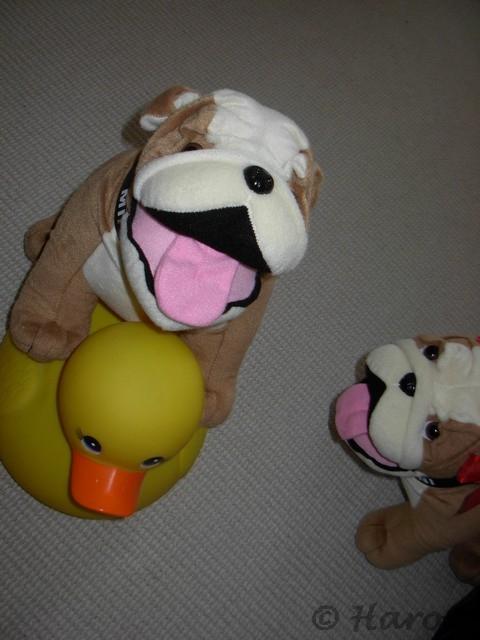 Der Keinohrhase, der die ganze Szene beobachtete, und in Minnie verschossen war, seitdem er sie zum ersten Mal gesehen hatte, nutzte die Gunst der Stunde.     Schnell besorgte er sich noch eine wunderschöne Blume, die er Minnie nun schenken und ihr Herz erobern wollte. Die Bulldog-Dame war total gerührt und von der schönen Blüte verzückt     , sodass sie nicht bemerkte, dass sich der eifersüchtige Lord anpirschte. Gerade als der Hase ohne Ohren zu einem selbstverfassten Gedicht ansetzen wollte, schnappte Lord blitzschnell zu     und dem Hasen blieb nur noch eines übrig: Sich tot zu stellen. Lord lies wieder von ihm ab und entschuldigte sich bei Minnie für sein Verhalten. Außerdem steht Lord nicht auf gelbe Enten, noch dazu, wenn sie aus Plastik sind. Minnie meinte auch, dass ein schielender Hase ohne Ohren bei ihr keine Chancen hätte. Sie steht nämlich eher auf Macho-Typen, wie Lord, und so wie er gerade für sie gekämpft hat, hat ihr schon sehr imponiert.     Sie verzieh ihm unter der Bedingung, dass er nie wieder jemanden anspringen dürfte, ohne Minnie vorher um Erlaubnis zu fragen. Die beiden kuschelten sich wieder in ihre Decke und waren glücklich.