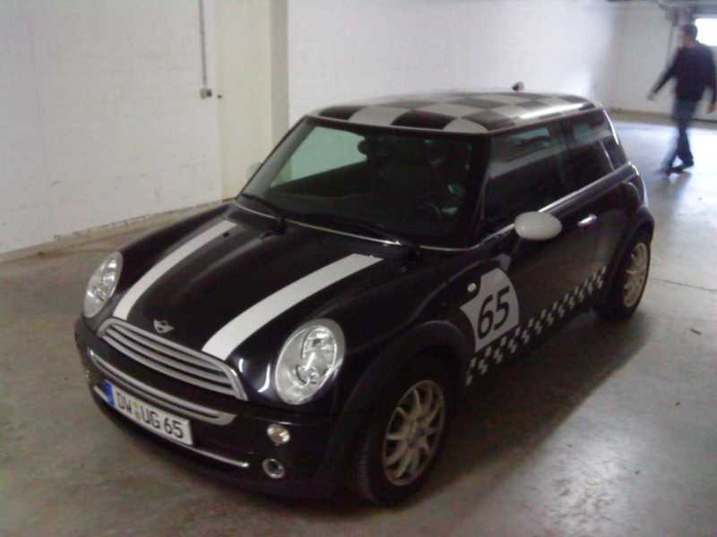 Dach wurde im checkered flag Design foliert und die Seiten im Original Mini Challenge Design.