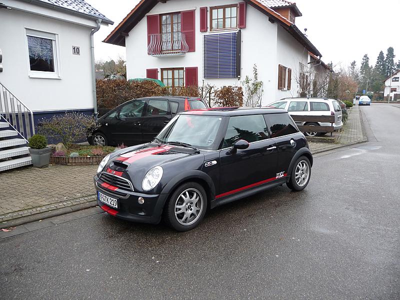 Wie findet ihrs? Ich weiss noch nicht, ob ich die Streifen über dem Panorama-Dach lassen soll und auch noch nicht ob ich nicht lieber den John Cooper Schriftzug wegmache.