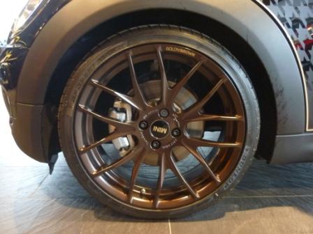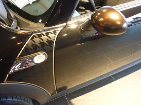 ich habe für Wiesmann ein Sondermodell entwickelt welches heute von Maui beklebt wurde. Als Basis diente ein neues Cooper Cabby welches mit S-Anbauten (Stoßstangen, ESD etc) bestückt wurde. Der Bock ist rund 30mm tiefer, trägt Breyton Race GTS 18" in hotchocolatemet-seidenmat lackiert sowie auch die Spiegelkappen und die Innenverkleidungen. Zudem wurden vorne und hinten die Belüftungen mit gold eingefasst und das Seitenteil auch welches noch mit einem mattschwarzen Dogtoothmuster gefüllt ist.