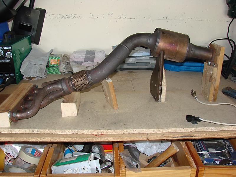 Du kannst den Pre-Kat am oberen Rand aufflexen, den Inhalt raus bohren und anschließend wieder verschweißen (auf Ausrichtung achten). Du kannst auch das ganze Stück durch einen 30° Edelstahl-Rohrbogen d=63,5mm ersetzen. Must dann halt noch die Aufnahme für die Lamdasonde einschweissen. Das sieht dann in etwa so wie unten aus.