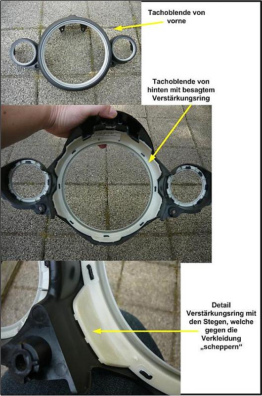 Verstärkungsstreben (weiß) hinter der Abdeckung mit Tape abgeklebt........siehe Bilder...........
