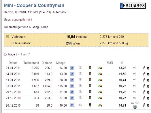 hmmm, die Werte für den Cooper S erscheinen mir aber sehr hoch. Ich fahre jetzt zwar erst seit 400 km den CM Cooper S und quäle ihn natürlich noch nicht so, aber bei mir liegt der Verbrauch um die 8l. Ausserdem fahre ich noch einen Peugeot 207cc mit dem gleichen Motor und liege da bei 10000km bei einem Durchschnitt von 7,5l (mit viel Kurzstrecke und Stadtverkehr) ...