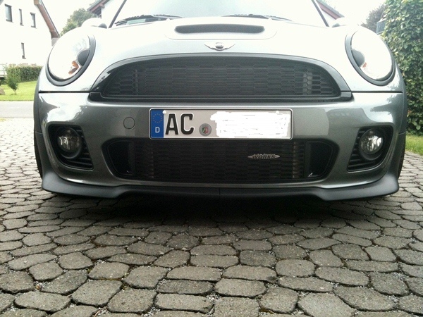 Du musst das untere Gitter bearbeiten, da jeder Mini Toleranzen hat verschiebt sich das ganze von Auto zu Auto. Sprich du musst die Front ranhalten und dann schauen wo du am Gitter mit dem Dremel Plastik wegnimmst. Das am Ende ein bisschen Spannung auf der Schürze ist, macht nix. Hauptsache die Spaltmasse zur Motorhaube sieht gut aus.