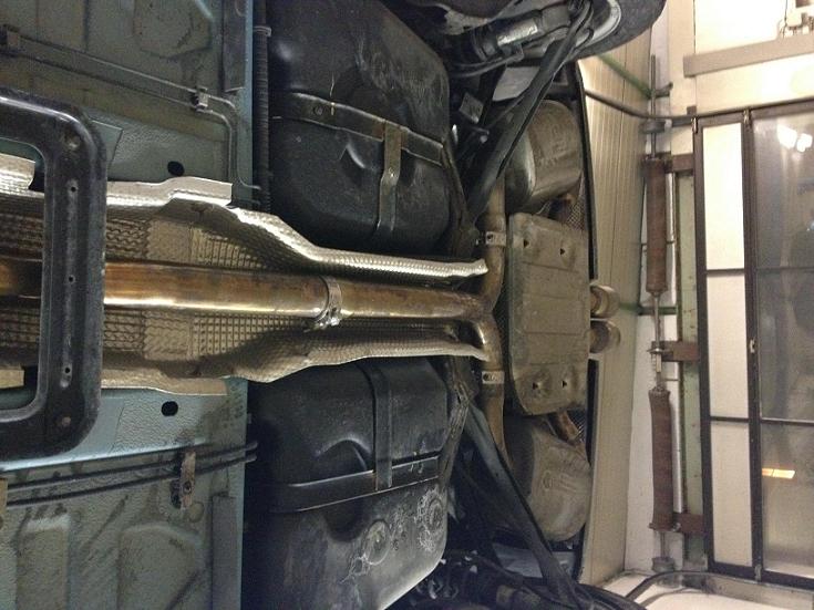 Auch musste der Vorschalldämpfer ja noch gerichtet werden, da dieser falsch angeschweisst wurde und an dem Halteblech unter dem Auto rappelte.