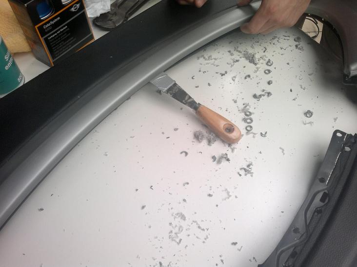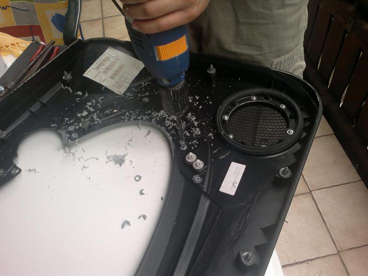 keine sorge, das sind nur die plastikspäne vom aufbohren. Ist halt ne sauerei, weil die überall rumfliegen und haften bleiben aber mit normaler bohrmaschine bekommst das aufgebohrt. Nur nicht zu zimperlich wenn du die alten eh nicht wieder ran bauen willst... Viel erfolg!
