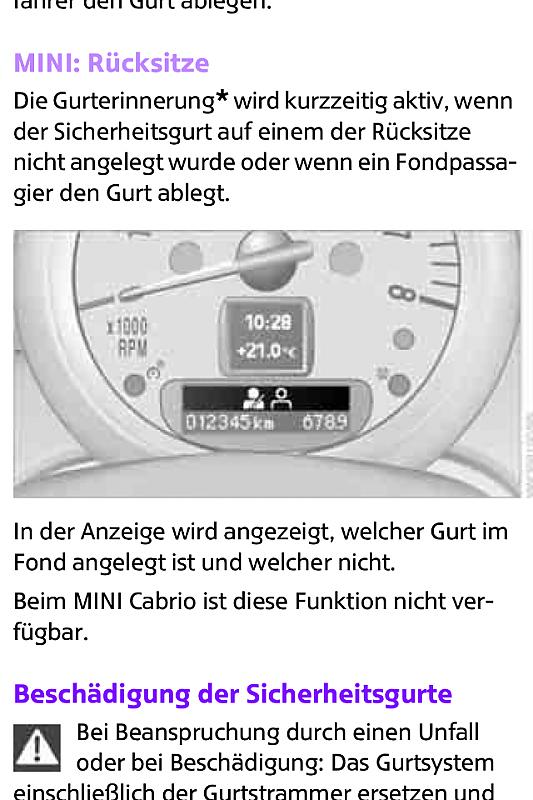 MCS_od_JCW schrieb:Haben sie aber scheinbar doch - zumindest mein R56 MCS zeigt, wenn wer auf der Rückbank sitzt und ob er angeschnallt ist.