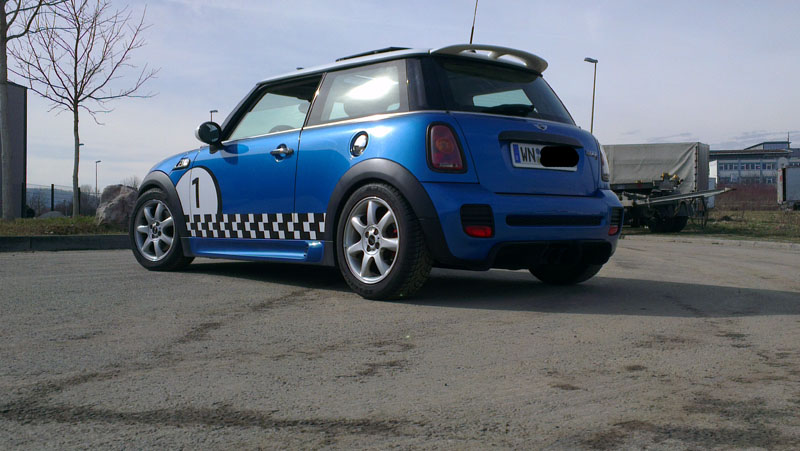 Als nächstes kommen erst einmal noch Kleinigkeiten wie eine kurze Sportantenne und neue Fußmatten im Checkered Flag Design.