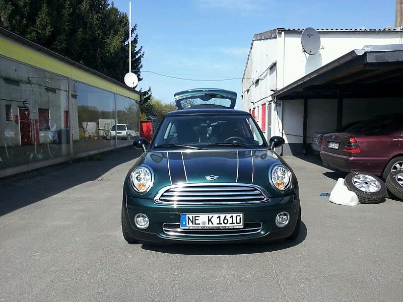 Ich heiße Krisztina, bin 30 Jahre alt, wohne in Dormagen (liegt zwischen Köln und Düsseldorf) und fahre seit knapp einem Jahr einen British Racing Green Mini Cooper R56. Mein Schätzchen hat 2009 das erste mal das Licht der Welt erblickt und hat mittlerweile 51 Tkm gelaufen Da der Kleine von Haus aus optisch leider wie ein Geländewagen verkauft wird , habe ich ihm vor kurzem neue Federn und schicke Felgen gegönnt. Weitere Maßnahmen wie Aero Paket etc. stehen ihm noch bevor Kommt dann alles in den nächsten Monaten...