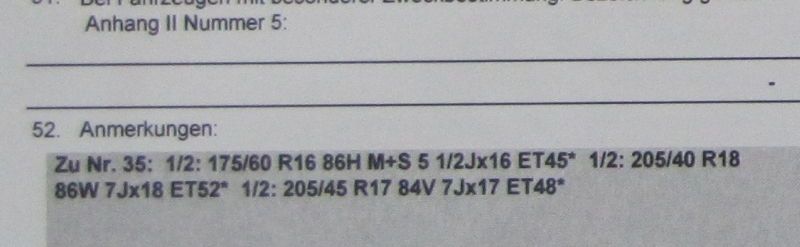 Ich stehe nun vor der Frage, was ich tun muss um meine Reifen/Felgengröße fahren zu dürfen. Ich habe leider keine ABE oder Teilegutachten, so dass ich vermutlich nicht einfach zum TÜV fahren kann um es eintragen zu lassen.