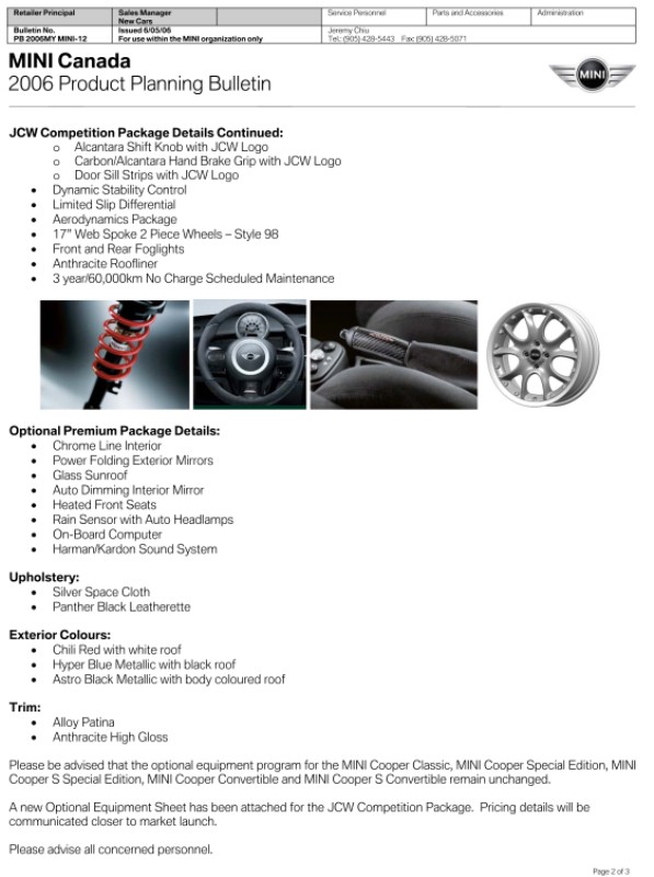 bin im Netz auf interessante Dokumente zum MINI Cooper S Competition-Edition 2006-Sondermodell gestoßen, die ich euch nicht vorenthalten möchte: